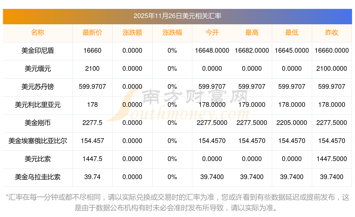 2025年11月26日美元相關(guān)匯率查詢