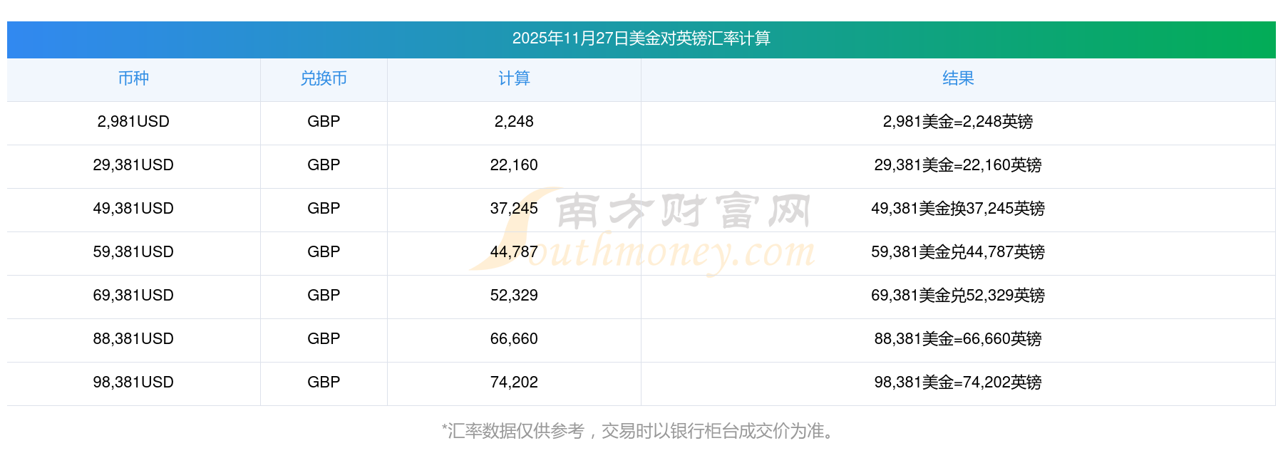 南方財(cái)富網(wǎng)為您提供美金對(duì)英鎊匯率最新價(jià)格詳情。