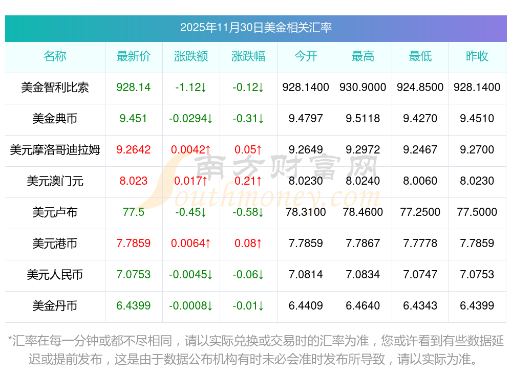 根據(jù)今天2025年11月30日匯率計(jì)算,USD兌換MYR匯率最新價(jià)4.132500,今開價(jià)4.1305,昨收價(jià)4.1325,最高價(jià)4.1360,最低價(jià)4.1280。