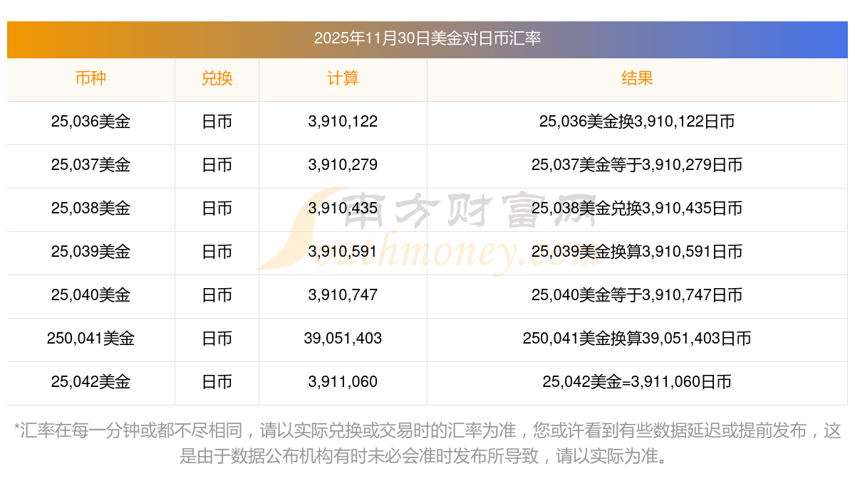 日幣今日匯率實(shí)時(shí)查詢 109美金對(duì)日幣匯率2025年11月30日