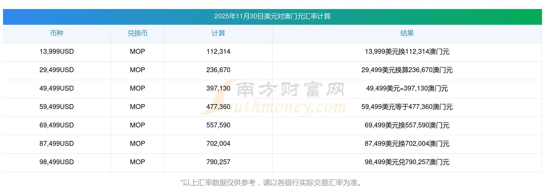 今天美元對澳門元匯率_4美元對澳門元匯率查詢(2025-11-30)