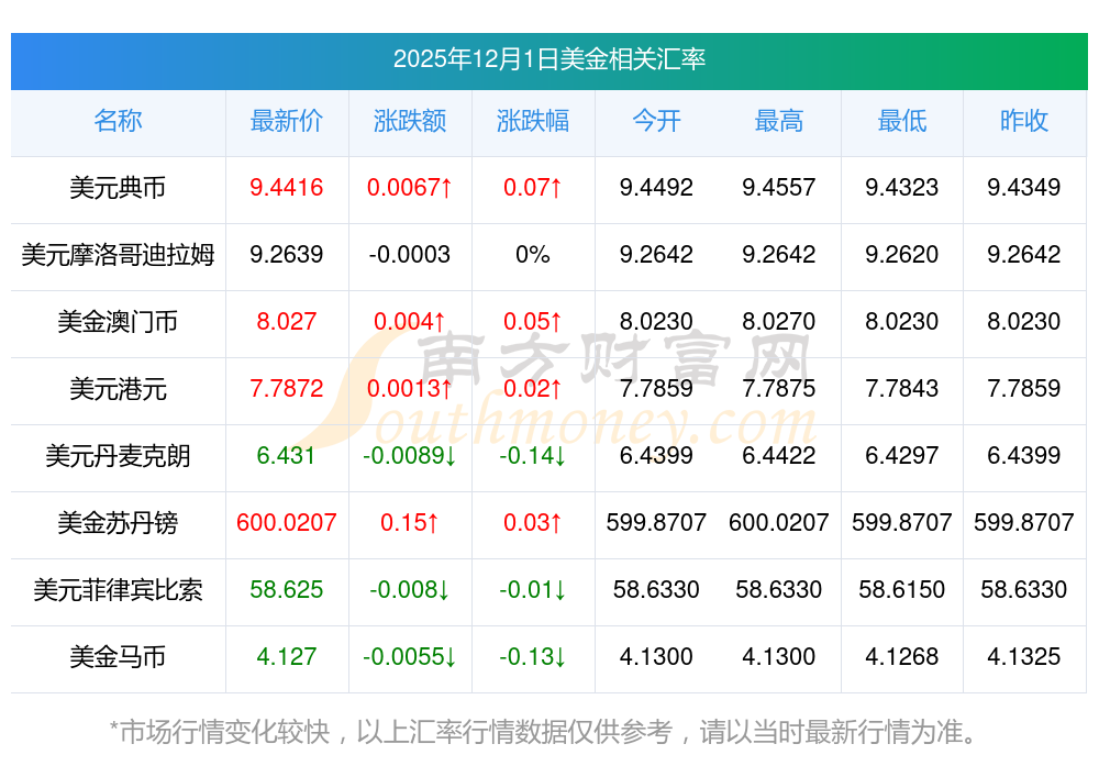 根據(jù)2025年12月1日匯率,美金兌換牙買加元匯率最新160.410000,今開160.2600,昨收160.2600,最高160.4100,最低160.2600。