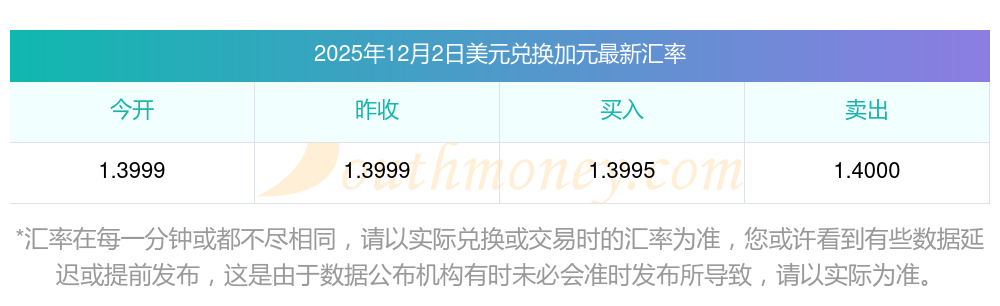今天匯率行情:1美元兌加幣匯率表(12月2日)