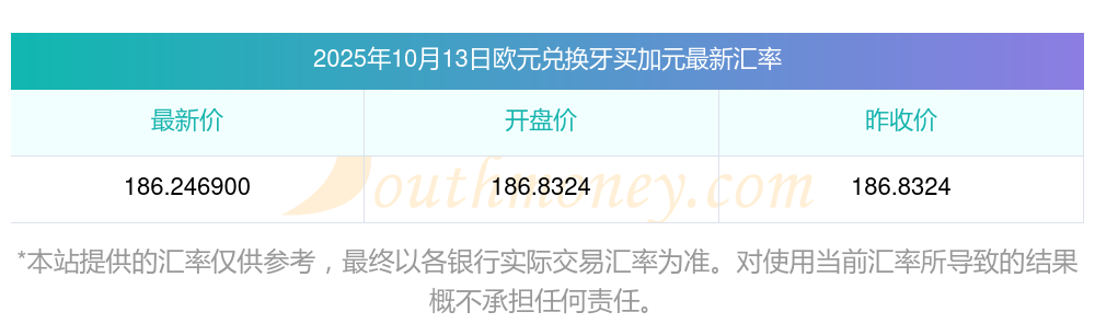 今日歐元匯價:2025年10月13日22歐元兌牙買加元匯價一覽表