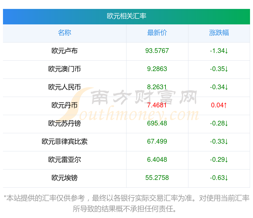 南方財富網(wǎng)為您提供歐元對人民幣匯率最新價格詳情。