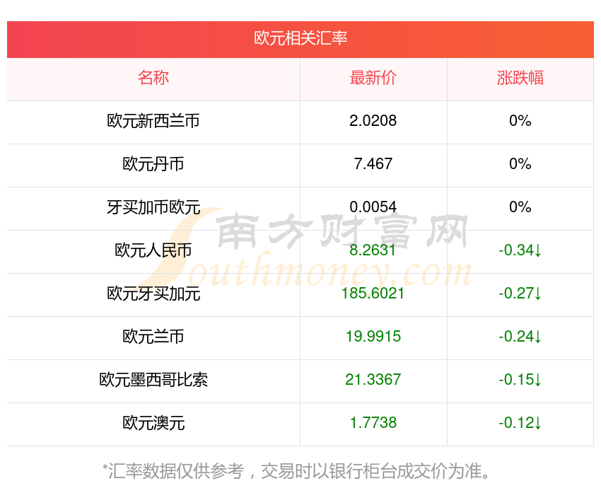 匯率在每一分鐘或都不盡相同,請以實(shí)際兌換或交易時的匯率為準(zhǔn),您或許看到有些數(shù)據(jù)延遲或提前發(fā)布,這是由于數(shù)據(jù)公布機(jī)構(gòu)有時未必會準(zhǔn)時發(fā)布所導(dǎo)致,請以實(shí)際為準(zhǔn)。
