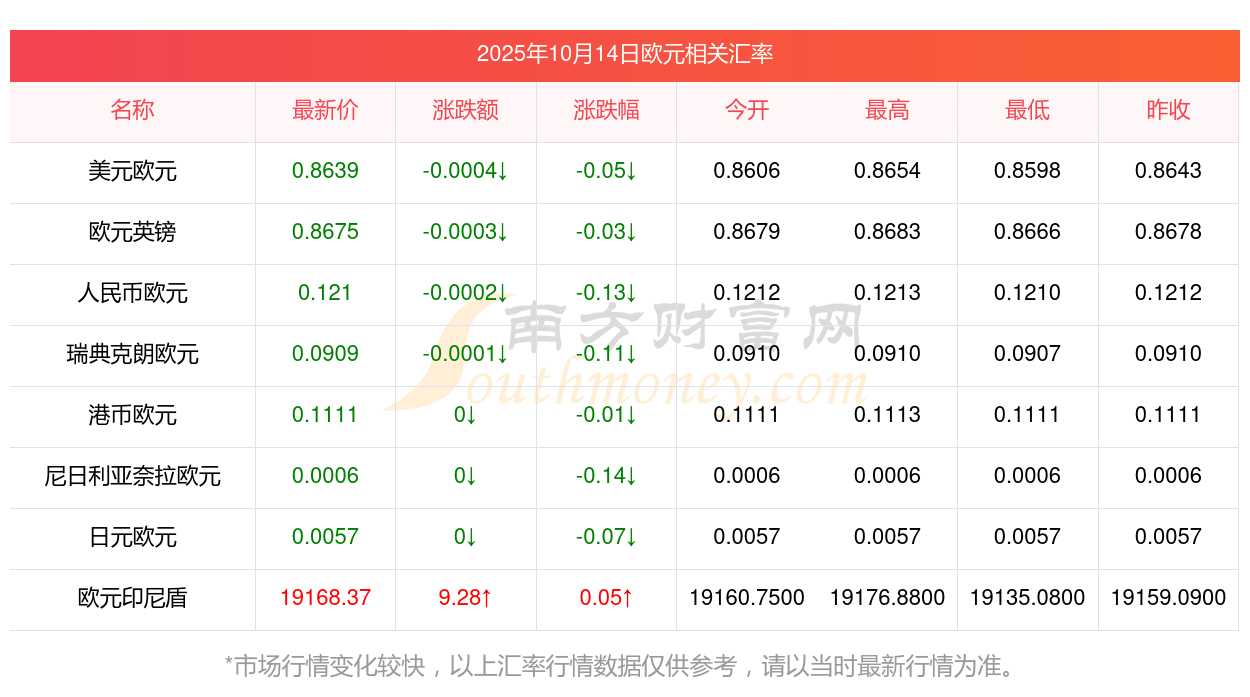 根據(jù)2025年10月14日匯率,歐元兌換阿幣匯率最新價1561.428300,今開價1560.2820,昨收價1560.1473,最高價1561.5631,最低價1558.1919。