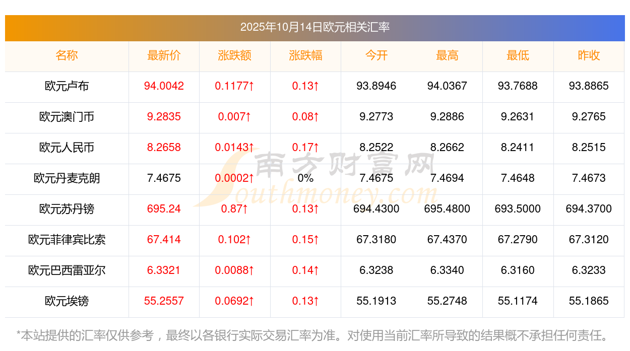 2025年10月14日歐元兌換新西蘭元最新匯率:2.031900,今開:2.0209,昨收:2.0207,最高:2.0321,最低:2.0181。