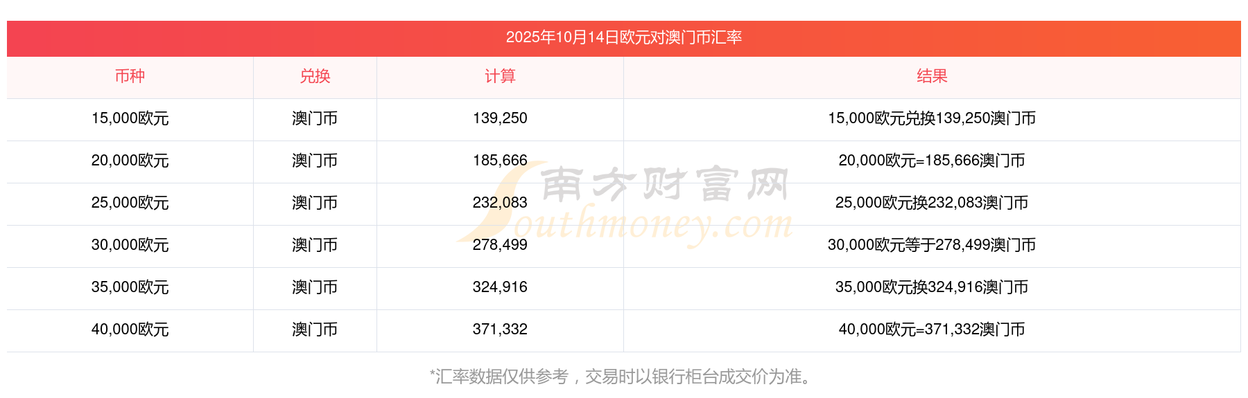 匯率實時更新!91歐元兌換澳門幣匯率表(2025年10月14日)