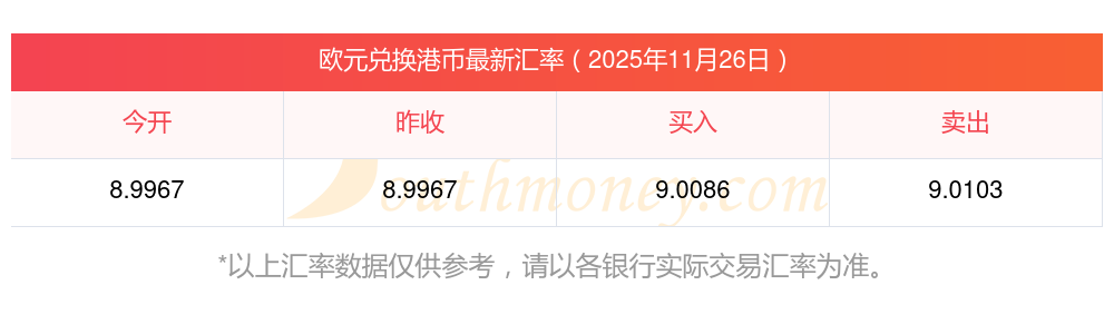 今日歐元兌港幣外匯匯率表查詢2025年11月26日