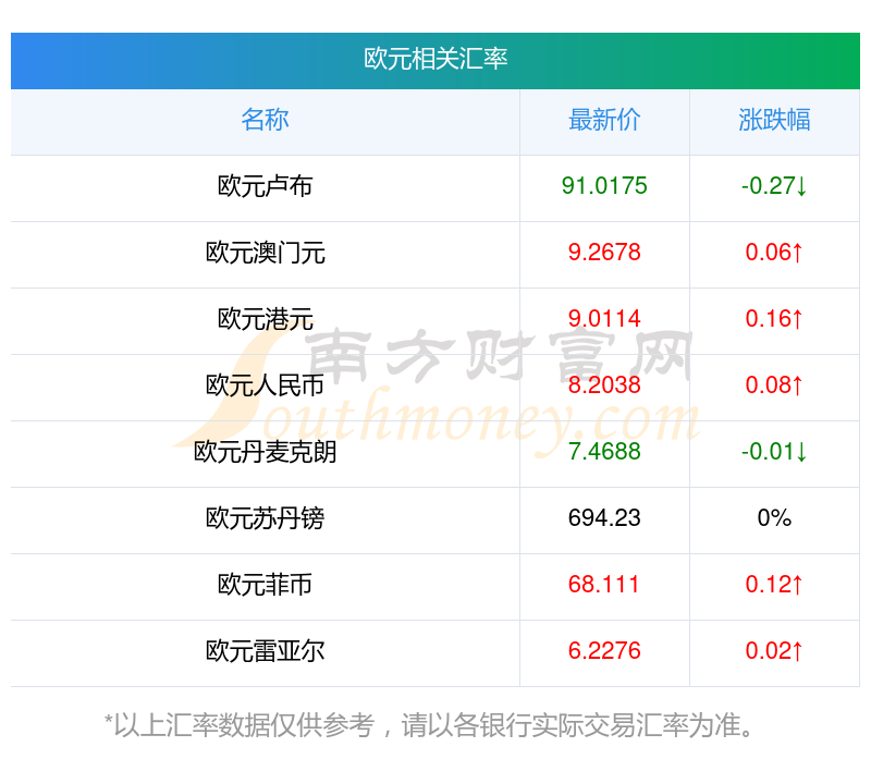 南方財(cái)富網(wǎng)為您提供歐元對(duì)臺(tái)幣匯率最新價(jià)格詳情。