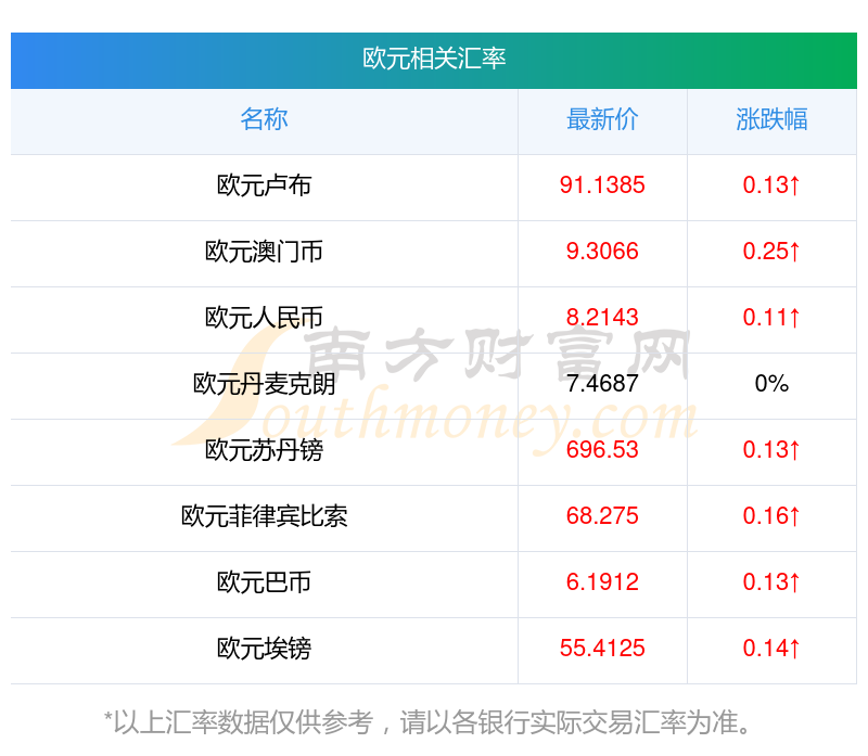 匯率在每一分鐘或都不盡相同,請以實際兌換或交易時的匯率為準,您或許看到有些數(shù)據(jù)延遲或提前發(fā)布,這是由于數(shù)據(jù)公布機構(gòu)有時未必會準時發(fā)布所導致,請以實際為準。