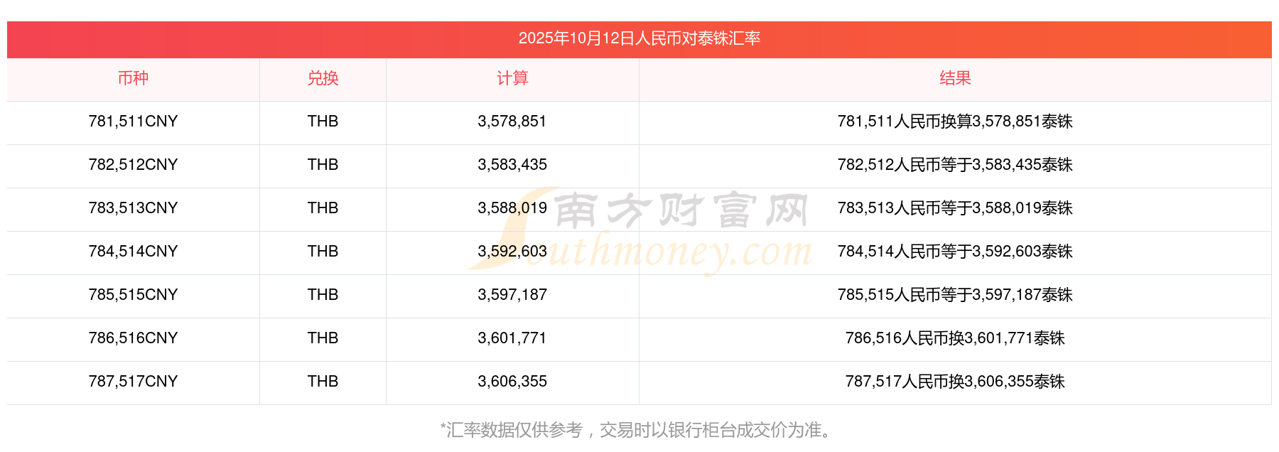 南方財(cái)富網(wǎng)為您提供人民幣對泰銖匯率最新價(jià)格詳情。