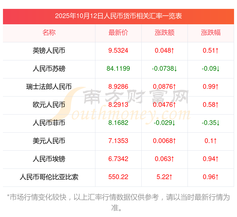 根據(jù)2025年10月12日匯率,人民幣兌換越南盾匯率最新3691.510000,今開3695.7600,昨收3691.5100,最高3706.1500,最低3691.5100。