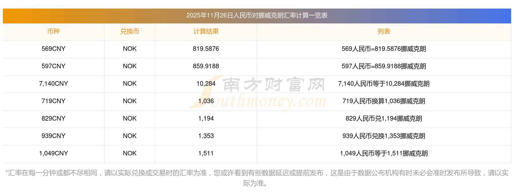 今日匯率中間價:1元人民幣對多少挪威克朗11-26