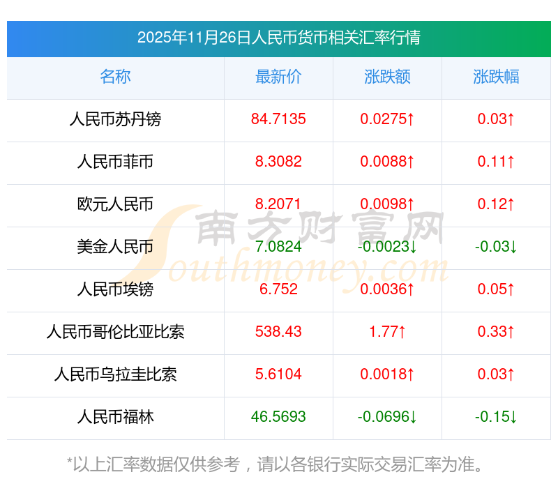 2025年11月26日人民幣相關(guān)匯率查詢