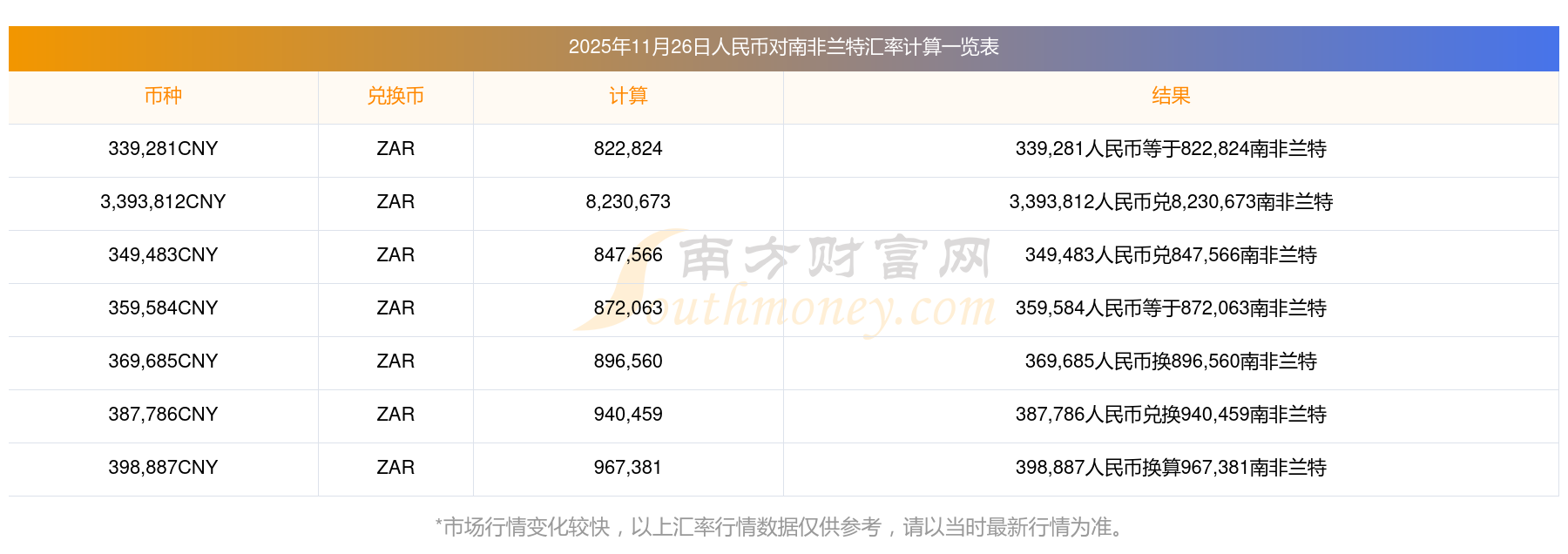 南方財富網(wǎng)為您提供人民幣對南非蘭特匯率最新價格詳情。