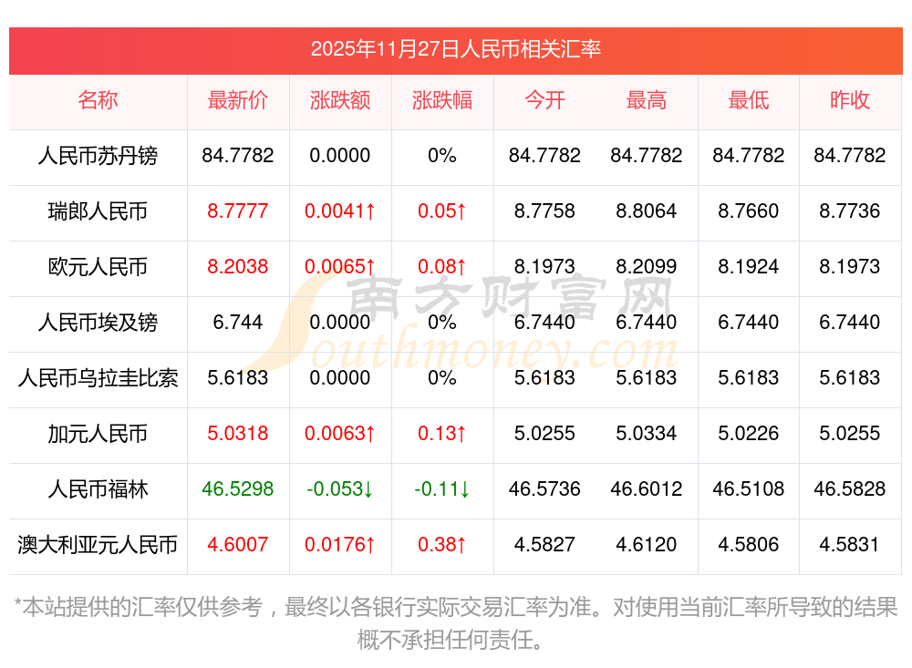 匯率在每一分鐘或都不盡相同,請(qǐng)以實(shí)際兌換或交易時(shí)的匯率為準(zhǔn),您或許看到有些數(shù)據(jù)延遲或提前發(fā)布,這是由于數(shù)據(jù)公布機(jī)構(gòu)有時(shí)未必會(huì)準(zhǔn)時(shí)發(fā)布所導(dǎo)致,請(qǐng)以實(shí)際為準(zhǔn)。