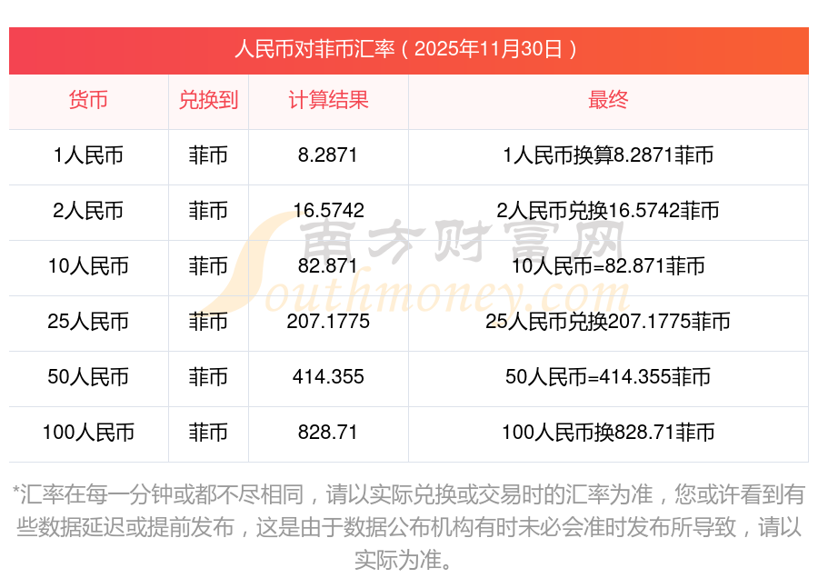 人民幣兌菲幣匯率一覽?今日匯率查詢11-30