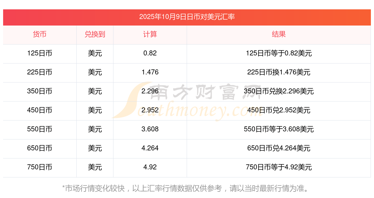 南方財富網為您提供日幣對美元匯率最新價格詳情。