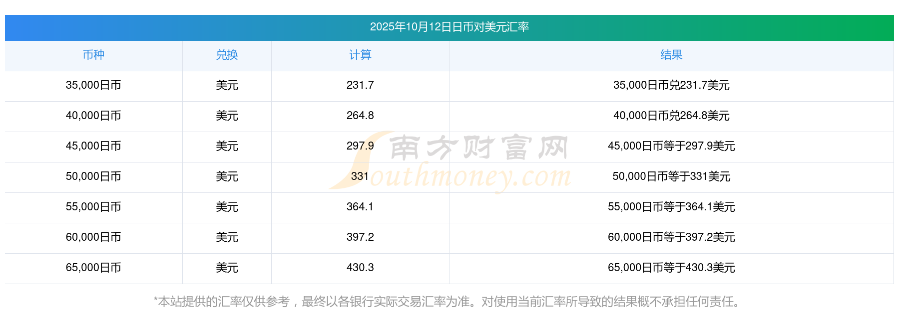 現(xiàn)在5890日元與美元的互換一覽2025-10-12