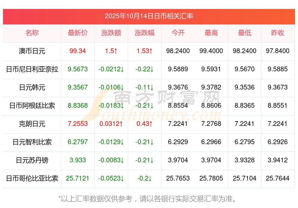 2025年10月14日日幣相關(guān)匯率查詢