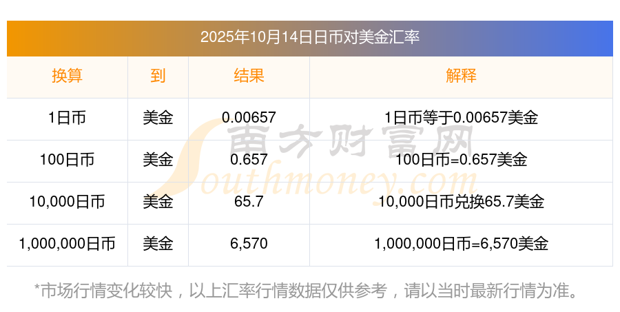 南方財(cái)富網(wǎng)為您提供日幣對(duì)美金匯率最新價(jià)格詳情。