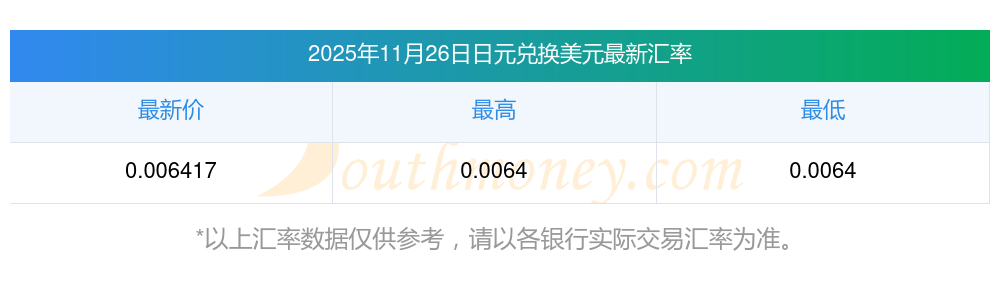 本站提供的匯率僅供參考,最終以各銀行實(shí)際交易匯率為準(zhǔn)。對(duì)使用當(dāng)前匯率所導(dǎo)致的結(jié)果概不承擔(dān)任何責(zé)任。