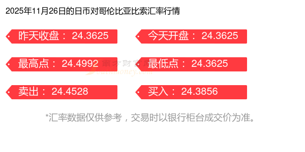 今日90日幣兌換哥倫比亞比索多少11-26 哥倫比亞比索外匯行情