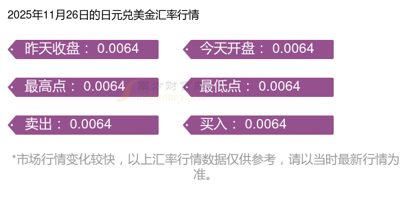 南方財富網(wǎng)為您提供日元對美金匯率最新價格詳情。