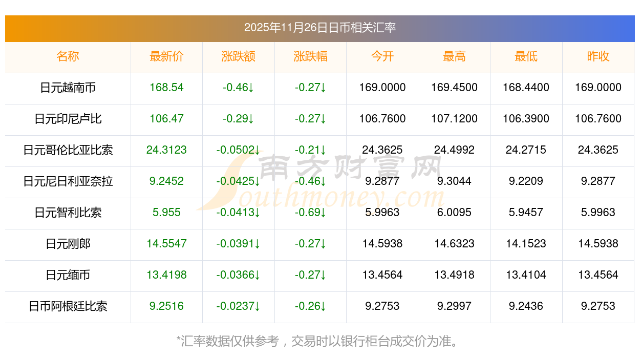 匯率在每一分鐘或都不盡相同,請(qǐng)以實(shí)際兌換或交易時(shí)的匯率為準(zhǔn),您或許看到有些數(shù)據(jù)延遲或提前發(fā)布,這是由于數(shù)據(jù)公布機(jī)構(gòu)有時(shí)未必會(huì)準(zhǔn)時(shí)發(fā)布所導(dǎo)致,請(qǐng)以實(shí)際為準(zhǔn)。