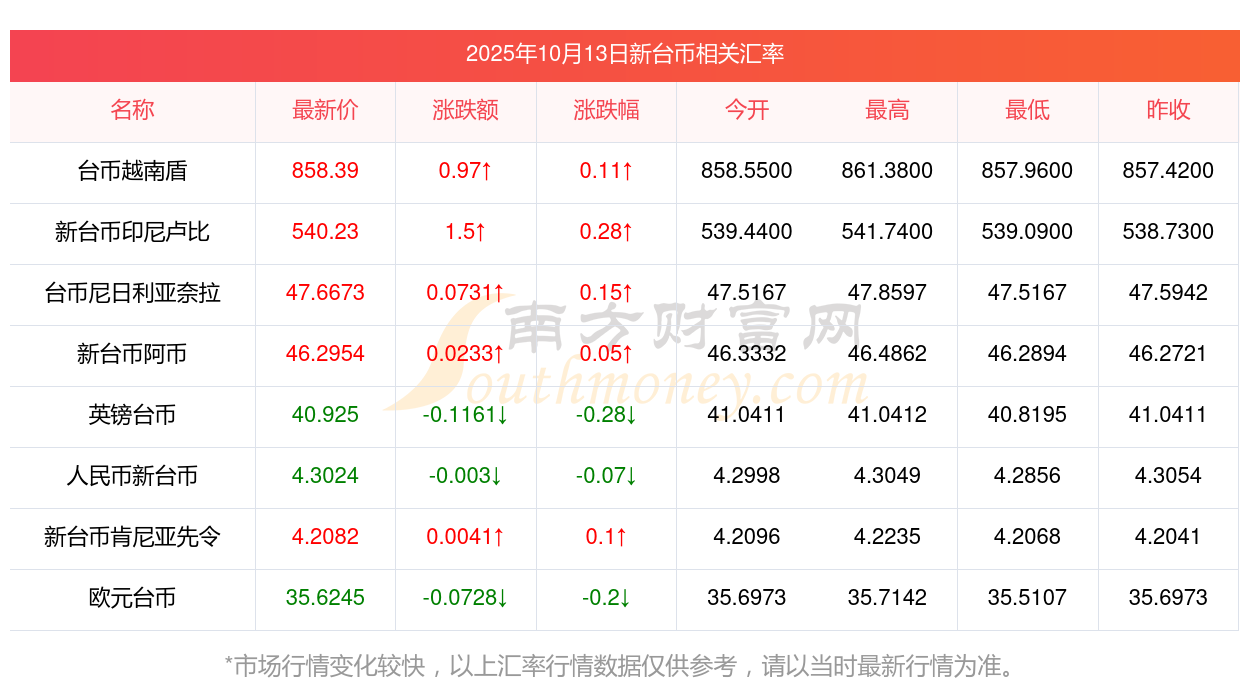 2025年10月13日新臺(tái)幣相關(guān)匯率查詢