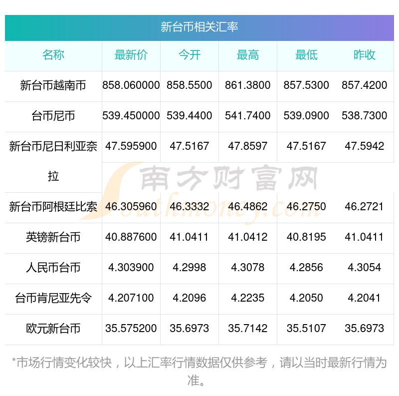 南方財(cái)富網(wǎng)為您提供新臺(tái)幣對(duì)美金匯率最新價(jià)格詳情。