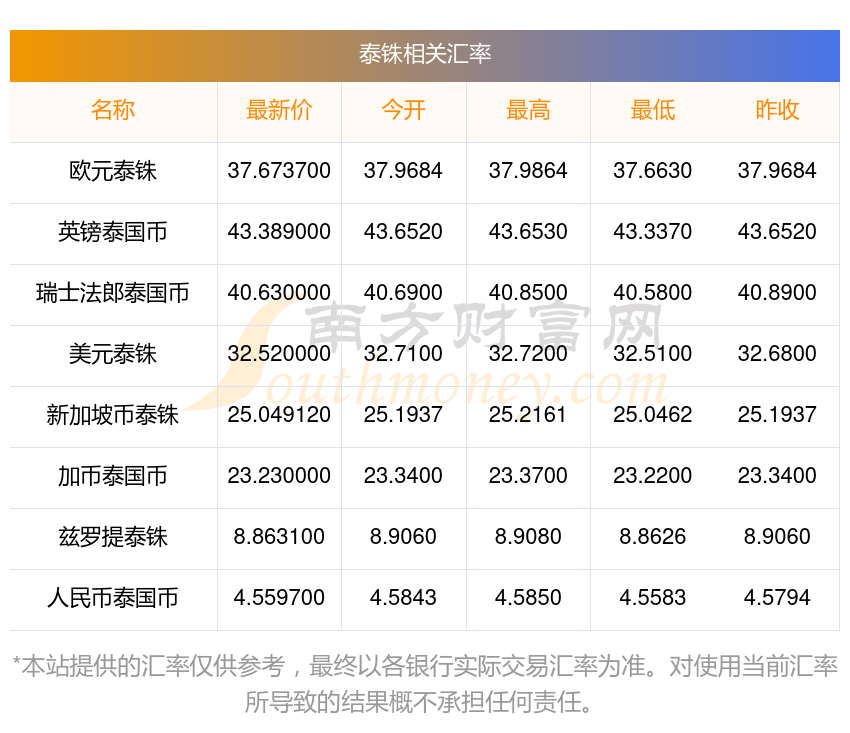南方財富網(wǎng)為您提供泰銖對雷亞爾匯率最新價格詳情。