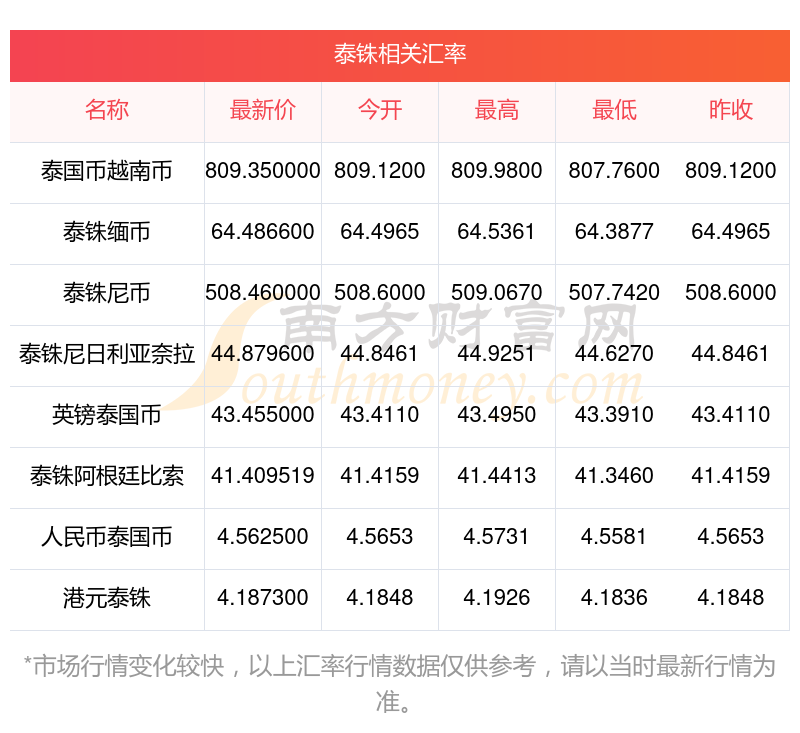 南方財(cái)富網(wǎng)為您提供泰銖對(duì)墨幣匯率最新價(jià)格詳情。