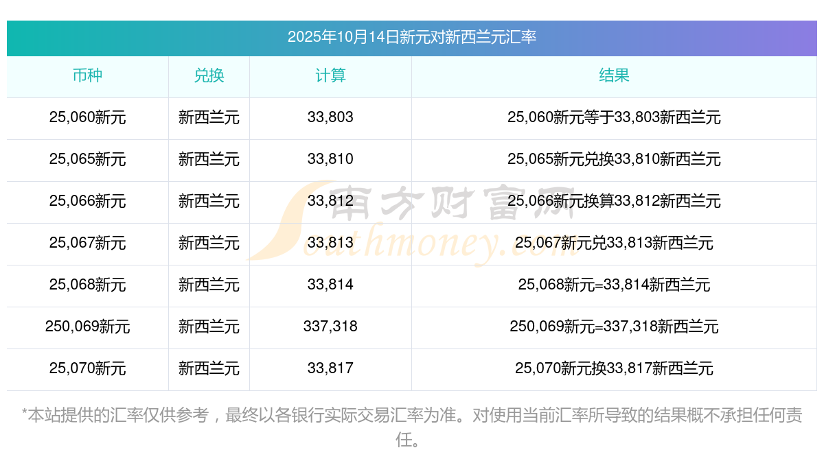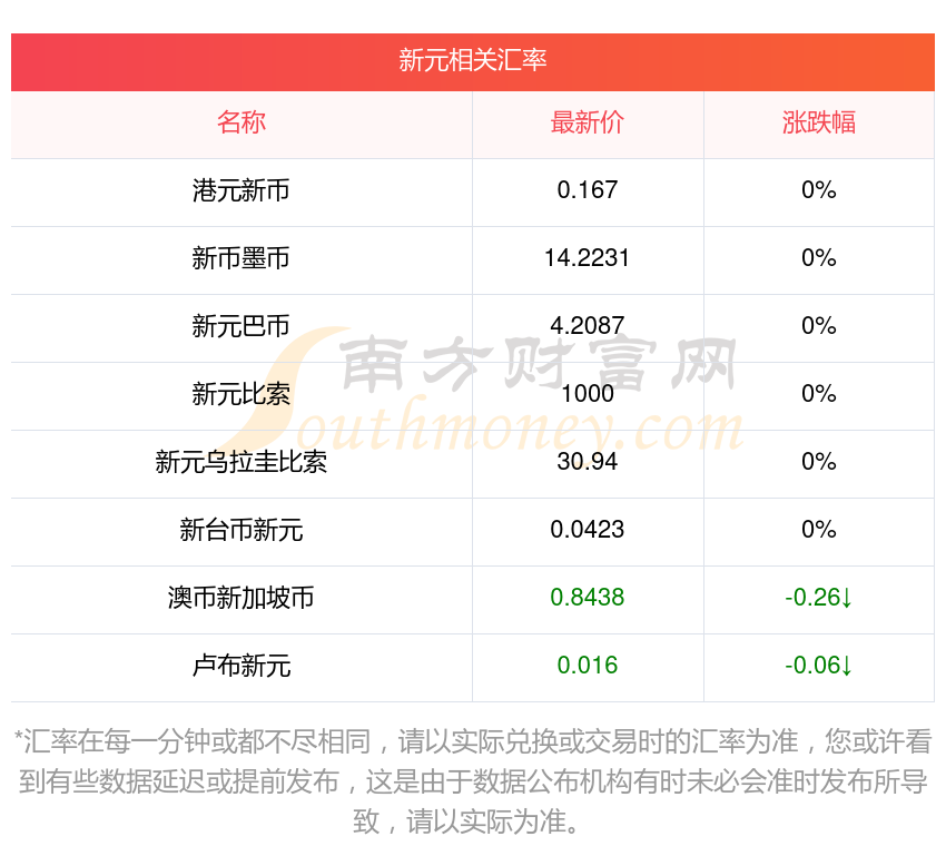 南方財富網為您提供新元對新西蘭元匯率最新價格詳情。