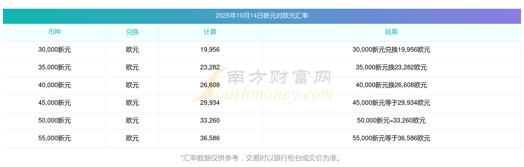 南方財富網為您提供新元對歐元匯率最新價格詳情。