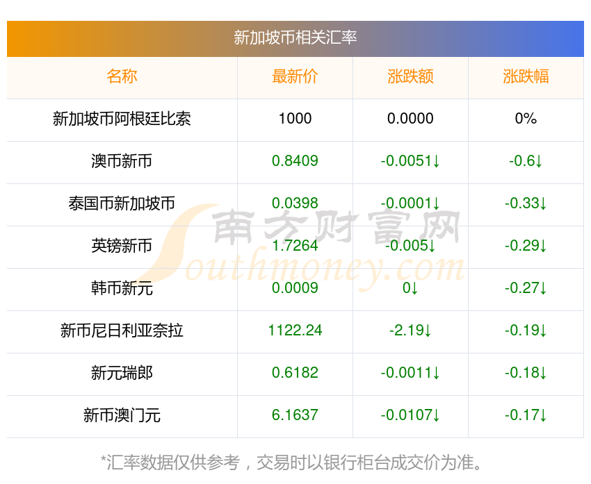 2025年10月14日新加坡幣相關(guān)匯率查詢