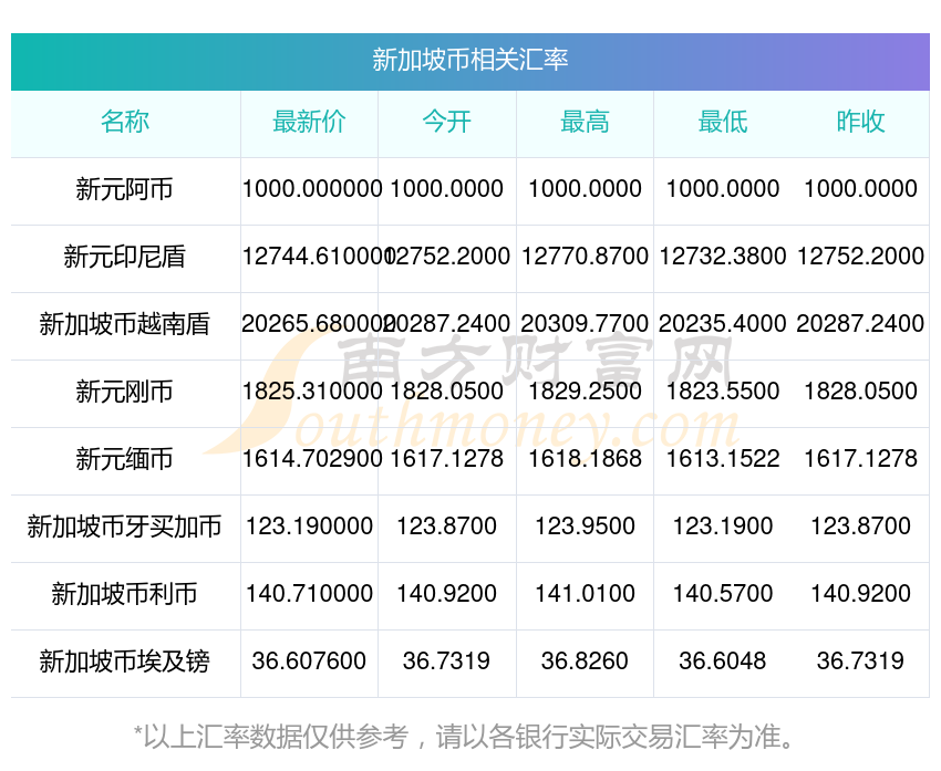 南方財(cái)富網(wǎng)為您提供新加坡幣對人民幣匯率最新價(jià)格詳情。