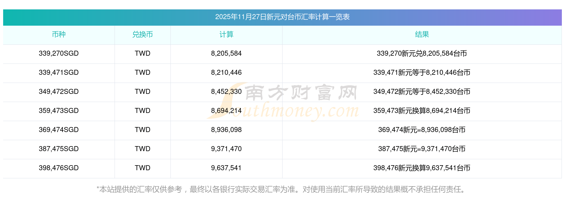 南方財富網(wǎng)為您提供新元對臺幣匯率最新價格詳情。
