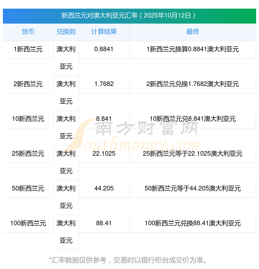 新西蘭元對(duì)澳大利亞元匯率調(diào)整每日匯率查詢10-12