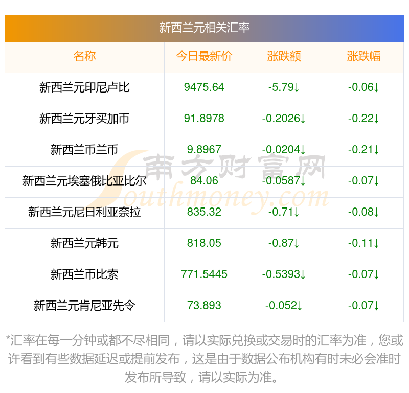 2025年10月14日新西蘭元相關匯率查詢