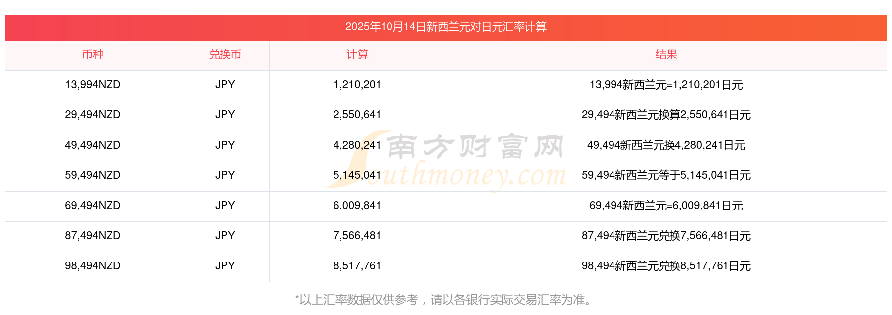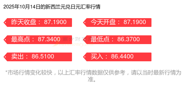 今日新西蘭元匯率調(diào)整 新西蘭元對(duì)日元的匯率多少2025年10月14日