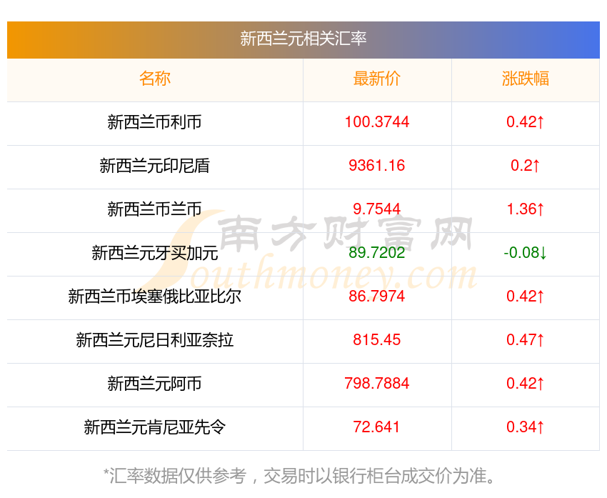 2025年11月22日新西蘭元相關(guān)匯率查詢