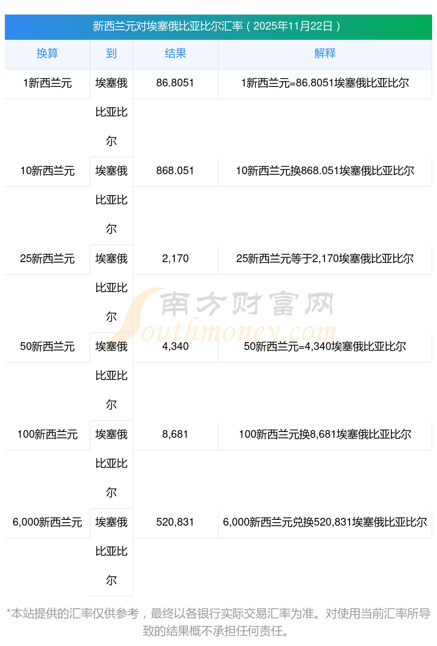 南方財(cái)富網(wǎng)為您提供新西蘭元兌換埃塞俄比亞比爾匯率最新價(jià)格詳情。
