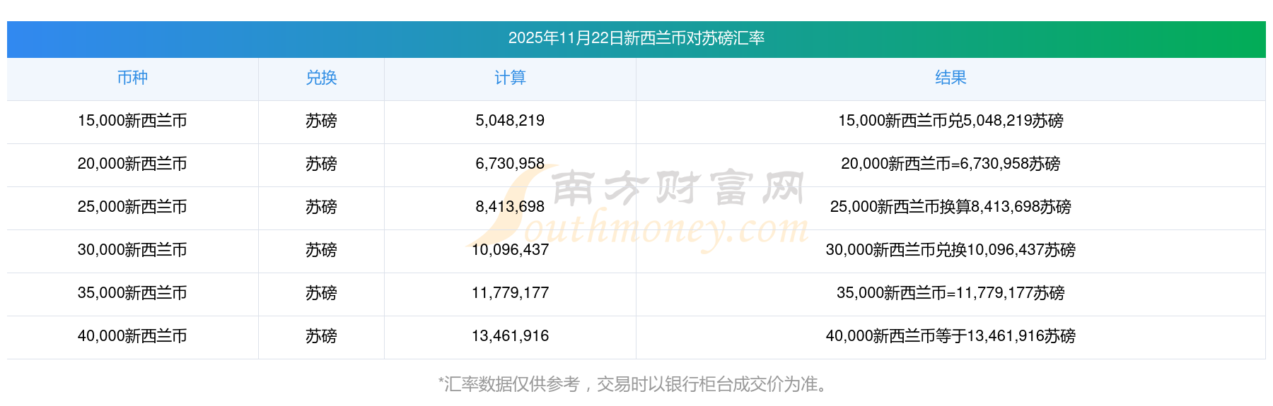 蘇磅匯率查詢_今天新西蘭幣換蘇磅匯率價多少?2025年11月22日