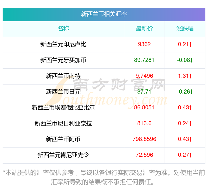 南方財(cái)富網(wǎng)為您提供新西蘭幣對(duì)利幣匯率最新價(jià)格詳情。