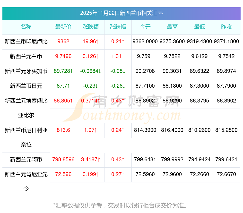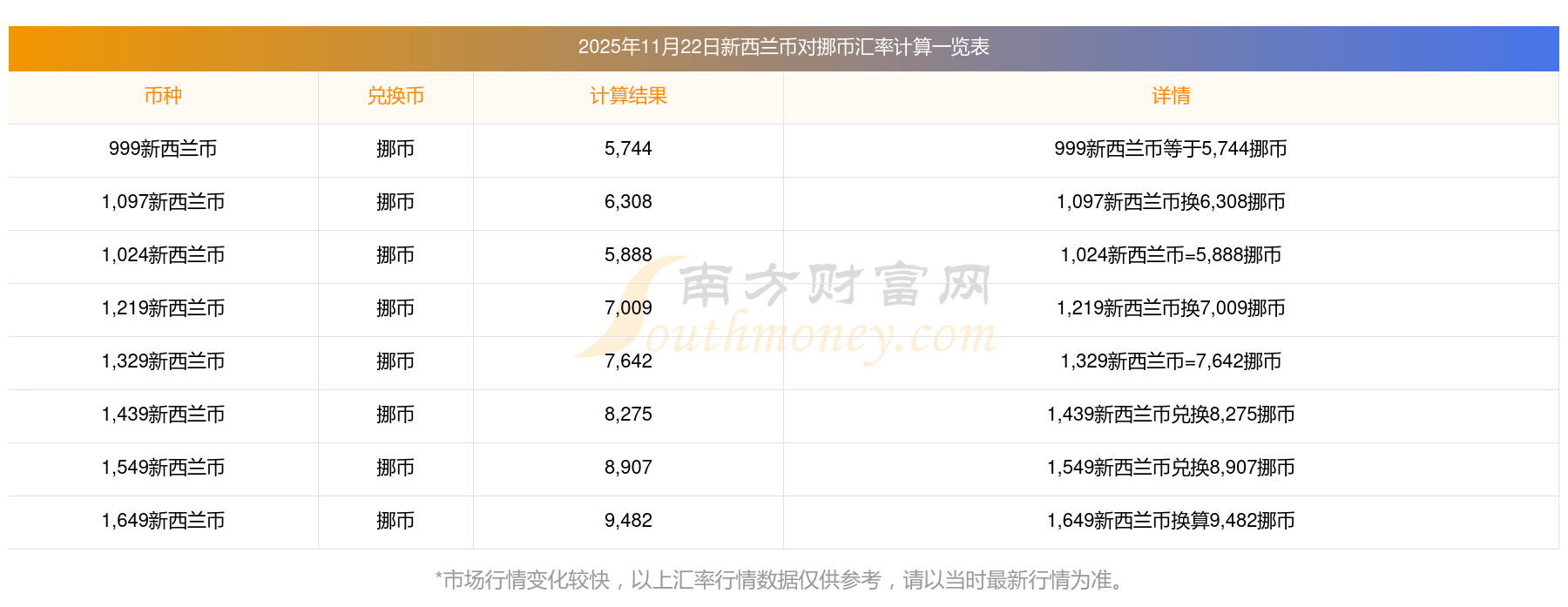 今日匯率:20新西蘭幣兌換挪幣匯率行情查詢? 2025-11-22