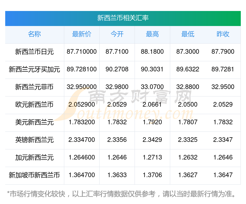 2025年11月23日新西蘭幣相關(guān)匯率查詢