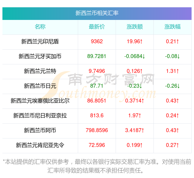 2025年11月23日新西蘭幣相關(guān)匯率查詢